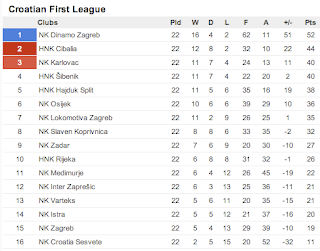 Pretty perverted way of thinking that I'm eying Hajduk. I was watching the Karlovac-Rijeka game and figured you needed to update the table. To be completely honest, Karlovac is beginning to grow on me. But don't get me wrong, the lower down the table Hajduk is, the better. Dinamo will still win the Championship.