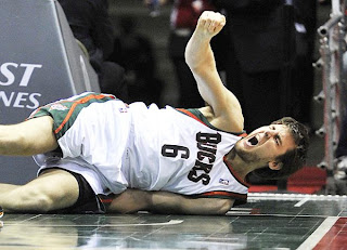 CroatianSoccerReport’s newest friend, Australian-born Croatian Andrew Bogut, is out for the rest of the season due to a freak dunk Saturday night which appeared to dislocate his right elbow when he landed. The Milwaukee Bucks are headed to the playoffs and have been on a hot streak as of late. Our thoughts are with Bogut as he rehabs the elbow. Although he is out for the rest of this NBA season, hopefully Bogut can recover in time to play for Australia in the FIBA World Basketball Championships held in Turkey later this year.