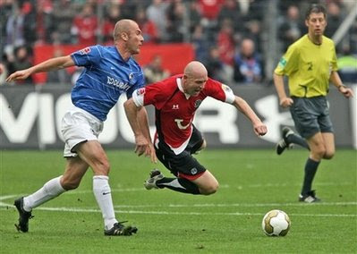 Photo: AP, Ivica Banović, left, getting physical with Hannover