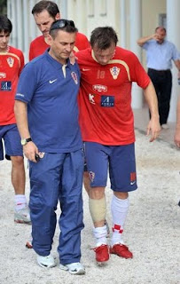 PHOTO: Antonio Bronić, Ivica Olić helped off the field after tearing his calf muscle in training for Croatia
