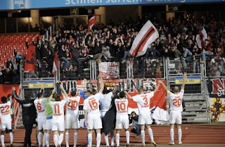 PHOTO: scfreiburg.com, Ivica Banović (#20) waves the SC Freiburg colors