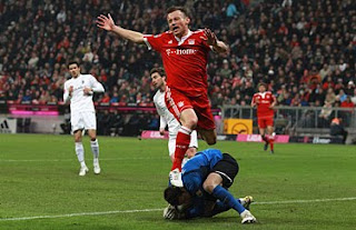 Despite a slow start, the surging Bayern Munich squad continued their on-field dominance with a come-from-behind 2-1 victory against SC Freiburg at the Allianz Arena with 69,000 thanks in large part to the brilliance of Arjen Robben. Ivica Olić and Danijel Pranjić both started for the Bavarian juggernauts, with Pranjić (who received a yellow card in the 11′) coming out of the game in the 71′ for Anatoliy Tymoschuk.