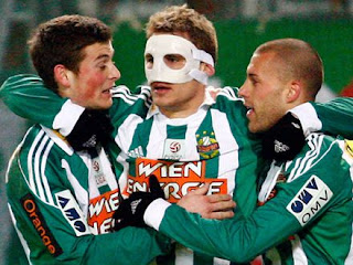 PHOTO: skrapid.at, A masked Nikica Jelavić celebrating with teammates