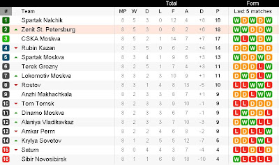 RUSSIAN PREMIER LEAGUE STANDINGS