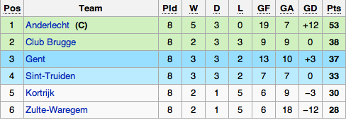 BELGIAN PLAYOFF TABLE. 2 GAMES LEFT.