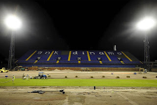The one item that is making me laugh is the media coverage the improvements to the stadium are getting. Having a heated field will help later in the year, but all of these other improvements are marginal. New seats, paint job and blue turf around the athletic track improve the view of the stadium. But, its still a dump. When with they (and when i mean they i also inlcude the idiots over at hajduk) realize they need to make improvements that rival what stadiums have in western europe. Concession stands, quality bathrooms, VIP treatment, restaurants, etc…