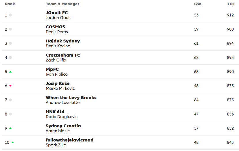 In the initial release, Jordan Gault aka JGault takes 1st place with 912 points. Denis Peros, Denis Kocina, CroatianSports.com’s Zach Gilfix and Ivan Piplica round out the top five.