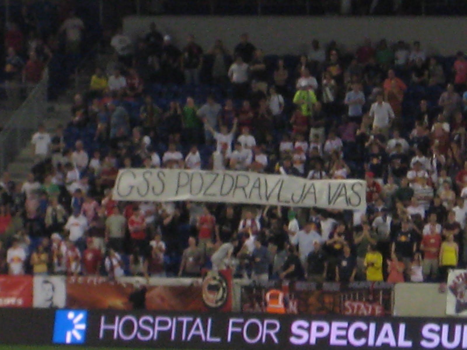 I went to the game with a few of my American friends and purposely didn't tell them it was Croatian heritage night. Before we had even entered the stadium, they were completely puzzled and shocked as to why there were so many Croats there. I let them be confused for awhile before telling them. Needless to say, they were impressed by the organization, voice and delivery by the Croatian fans. The huge Croatia jersey was the highlight of the night.